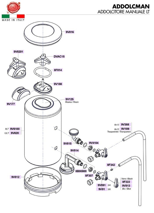 TAPPO COMPLETO ADDOLCITORE MANUALE DVA - PLASTICA